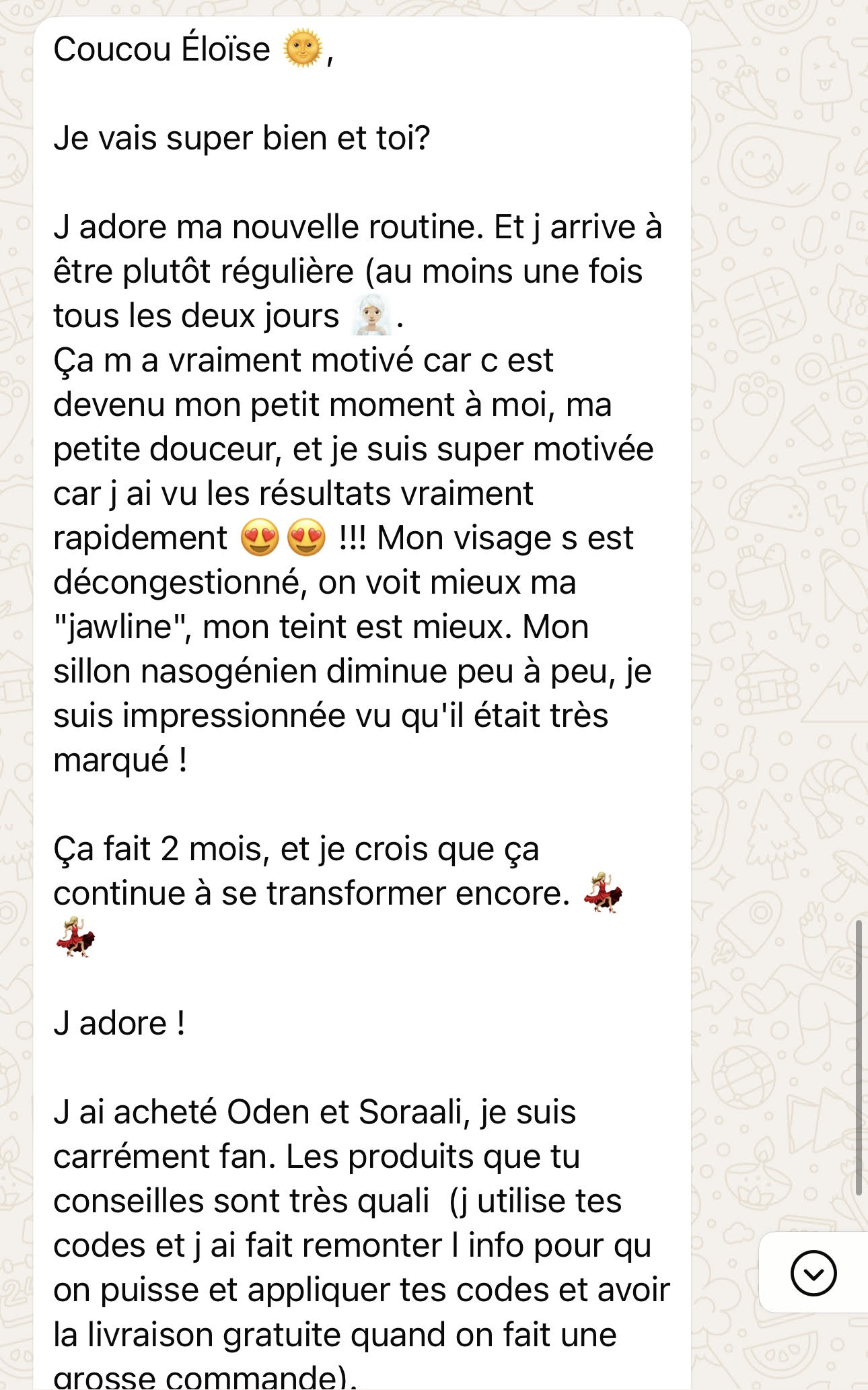 Petit à petit, j’ai créé ma propre approche holistique : fondée sur l’écoute, la douceur, et une efficacité réelle qui transforme autant ton visage que ton intérieur.