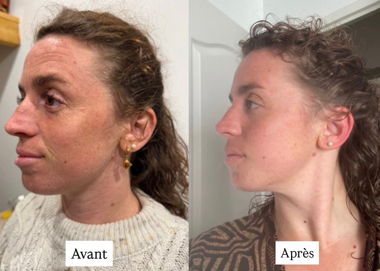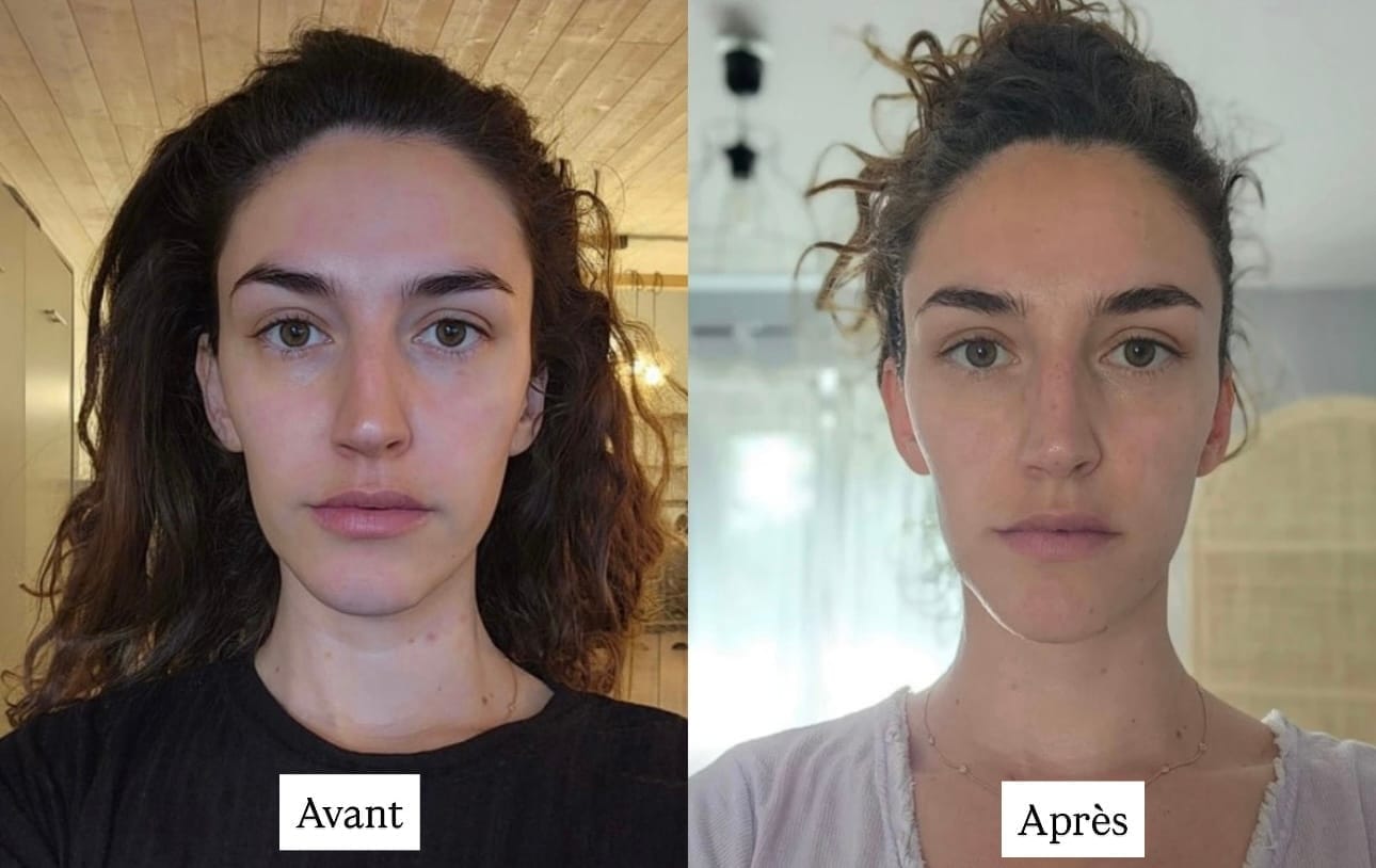 Tes pommettes se raffermissent, l'ovale se redessine, les cernes s'adoucissent. Chaque soir, tu souris un peu plus à ce reflet qui renaît.